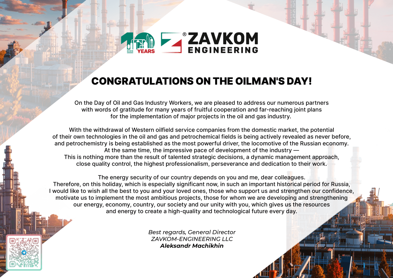 On the Day of Oil and Gas Industry Workers, we are pleased to address our numerous partners with words of gratitude for many years of fruitful cooperation and far-reaching joint plans for the implementation of major projects in the oil and gas industry.