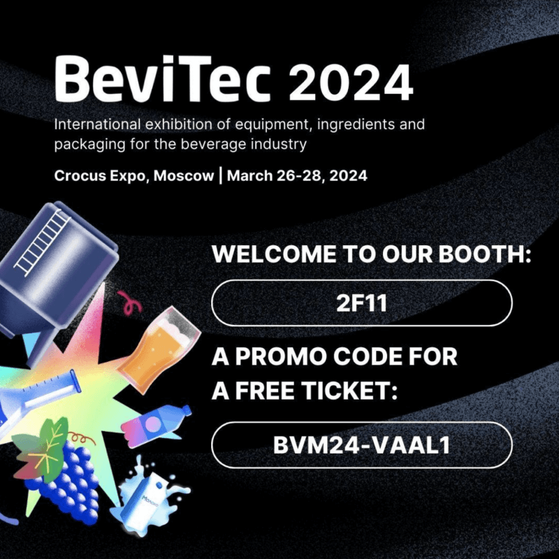 From 26 to 28 March 2024, the annual International Exhibition of equipment, ingredients and packaging for the production of beverages «BeviTec» will be held at the International Exhibition Center "Crocus Expo".