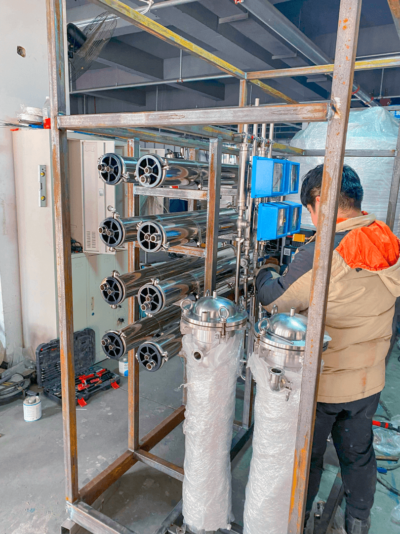 Установка обратного осмоса предназначена для очистки и снижения общей минерализации воды. Принцип работы системы основан на баромембранных процессах разделения жидкостей, а именно: под действием внешнего давления, приложенного к разделяемой жидкости, происходит проницание молекул воды через мембрану.